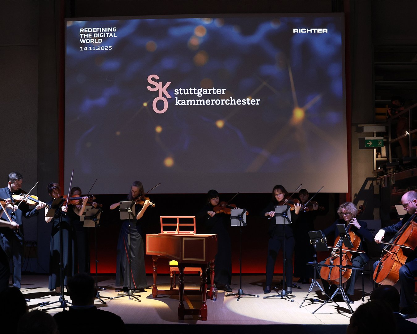 Vor den Vorträgen stand das erste musikalische Highlight. Das Stuttgarter Kammerorchester unter der Leitung von Susanne von Gutzeit (1. Violine) erfreute das Publikum mit den Stücken „Der Frühling“ aus Vivaldis „Die vier Jahreszeiten“ sowie Georg Breitschmids „Wien bleibt Krk“.
