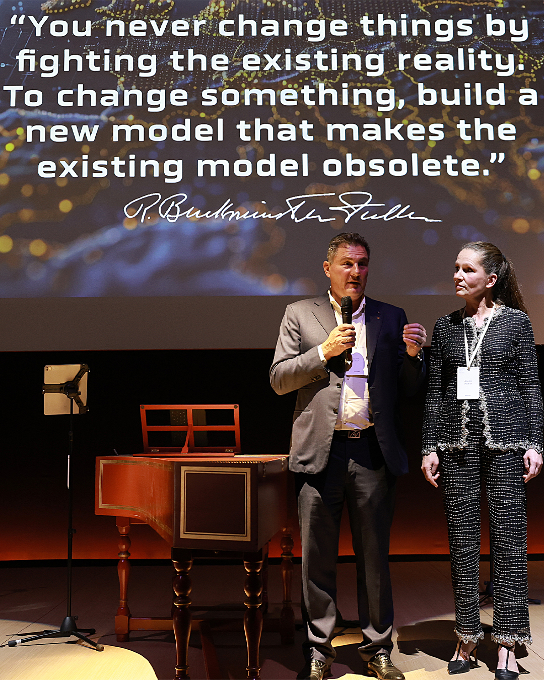 Der zweite Sprecher des Abends, Christopher Peak, stammt aus dem amerikanischen Silicon Valley und war viele Jahre für das Design der Apple Stores auf der ganzen Welt verantwortlich. Heute ist er als Senior Vice President für den Bereich Retail Design bei ACV Consulting tätig. Er hat einen anderen Blickwinkel auf digitale Technologien. Er weist auf einen Generationskonflikt hin. Während sich die „Millenials“ oft dafür interessieren, wie die Technik funktioniert, beschränke sich die „Gen-Z“ stärker darauf, die Technik niedrigschwellig zu nutzen. Daraus ergäben sich in der Folge Probleme der Geschäftsideen von Start-Ups. Nicht jede gute Geschäftsidee lässt sich direkt aus der realen Welt in die digitale Welt übertragen. Der „menschliche Faktor“ sei nicht digital abzubilden. Dazu gehören neben der haptischen Erfahrung, Dinge einfach anzufassen auch der direkte Kontakt zum Aufbau von Vertrauen in eine Marke, in ein Produkt oder in die zugehörigen „Macher“. In der heutigen Welt sei eine rein technische Lösung nicht mehr als Produkt tragfähig, weil die Begeisterung für „reine Technik“ rückläufig sei. Die digitale Welt brauche eine reale Entsprechung, etwas, mit dem sich die Menschen identifizieren können. Er gab ein augenfälliges Beispiel: Man könne einen Baum in einem Wald an einen Kunden verkaufen, wenn man diesen Baum real sehen, fühlen und anfassen kann. In der Digitalwelt könne man keine Beziehung zu diesem Baum aufbauen, wenn er nur digital als Bild in einem Katalog zu sehen sei. Es sei wichtig, bei digitalen Dienstleistungen und Plattformen den Faktor Mensch nicht zu vernachlässigen, sondern Identifikationsflächen und persönlichen Kontakt bereitzustellen.
